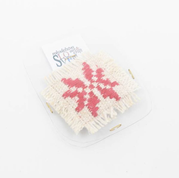 Broške z belokranjskim vezenjem in tradicionalnimi vzorci prinašajo pristni košček dediščine v sodobni modni svet. Vsaka je ročno izdelana na domačem lanenem platnu v velikosti 3 x 3 cm.