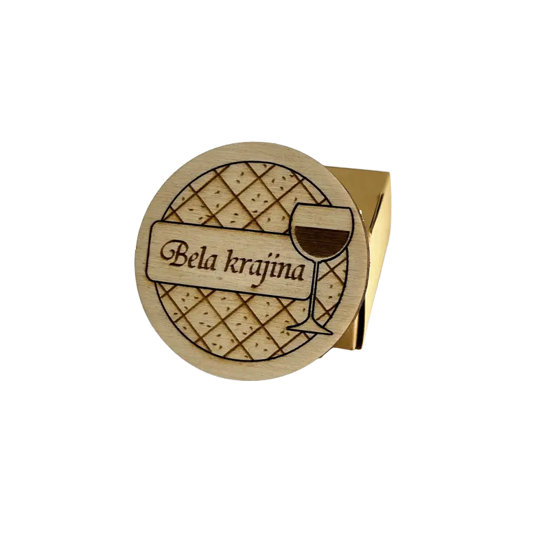 Leseni magnet z vgraviranim motivom belokranjske pogače in kozarca vina ter napisom »Bela krajina« je prepoznaven spominek, ki simbolizira bogato kulinarično dediščino regije. Zaradi svoje avtentičnosti in lokalnega značaja predstavlja privlačen spominek za turiste ter lep opomnik na obisk Bele krajine.