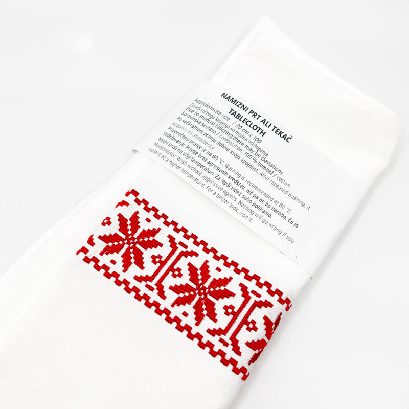 Prt ali tekač, ki poskrbi za lep izgled mize. Poseben dodatek je belokranjsko vezenje, ki je vtkano na prt.