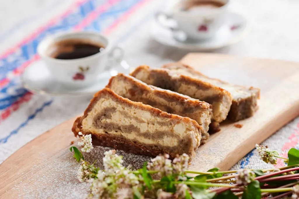 Po tako pripravljenem testu se do dna pekača, iz ene na drugo stran, zarežejo ravne zareze s približno 4 cm medsebojno razdaljo. Zarez naj bo sedem, na sredini ena in na vsako stran po tri. Testo se nato premaže s stepenim jajcem, posuje z zrni kumine in še enkrat premaže z jajcem. Po vrhu se tako pripravljeno testo posuje še s ščepcem debelo zrnate morske soli.